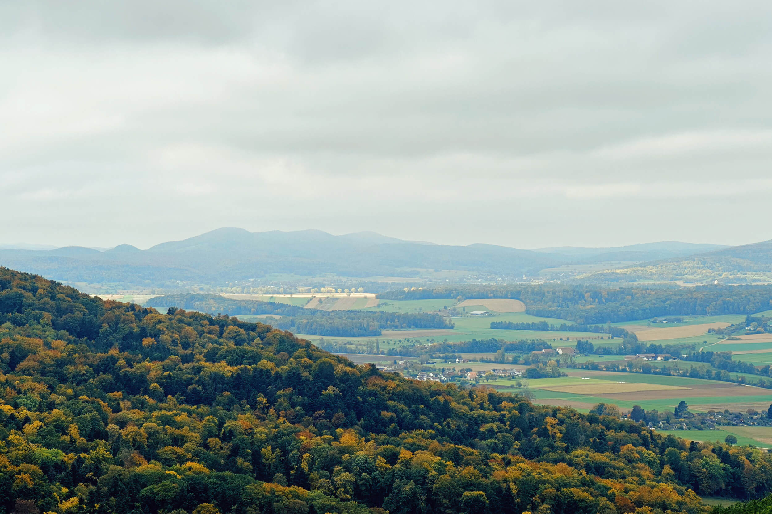 The cold I had last week has been with me this week too, although it was a strange cold. I didn’t have any real symptoms during the day, but I still didn’t feel healthy in general. And then I woke up every night and had a cough for an hour before I could go back to sleep. I therefore wanted to take it easy and decided not to go on a planned hike in the Alps. But I didn’t want to be completely without it either. Therefore Saturday we went to the area around Basel. Instead of taking the train, we took the streetcar half an hour to Flüh. After a detour to France to the Landskron castle ruins, we headed to Mariastein, then over the plateau to Metzerlen and back down into the valley to Hofstetten. From there, we took the streetcar back to the city. The hike had everything autumn has to offer. In the morning, the atmosphere was rather dull and foggy, but this changed abruptly when the sun came out after midday. The autumn-colored forests were beautiful under both skies, the overcast and the bright blue one. Incidentally, I did this hike once before, in spring 2022. It’s beautiful how the same landscape presents itself differently depending on the season.
